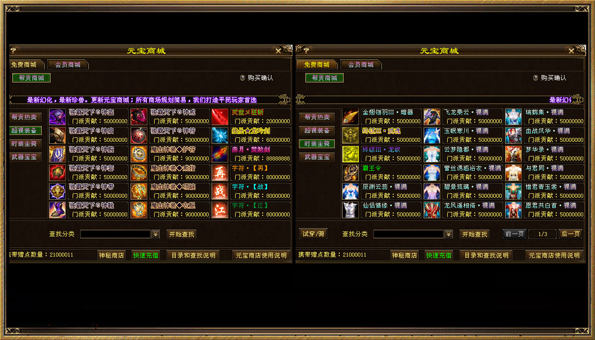 【游戏介绍】套餐一:100元=10亿门贡+2亿属性+会员武器+VIP属性幻彩名!